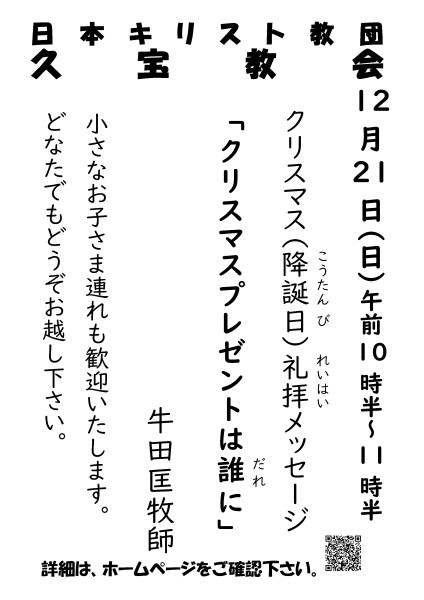 メッセージ「クリスマスプレゼントは誰に」牛田匡牧師