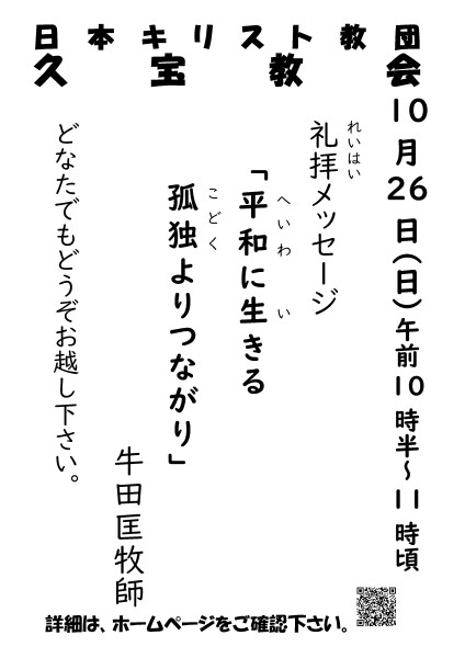 メッセージ「平和に生きる。孤独よりつながり」牛田匡牧師