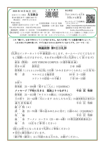 2025年10月26日の礼拝のお知らせです。