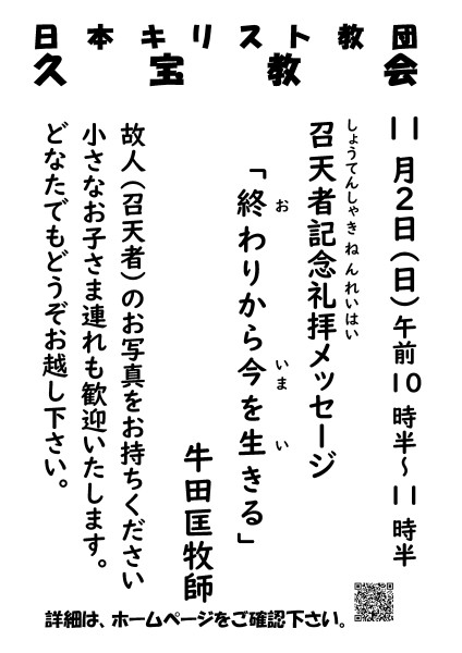 11月2日 召天者記念礼拝の予告